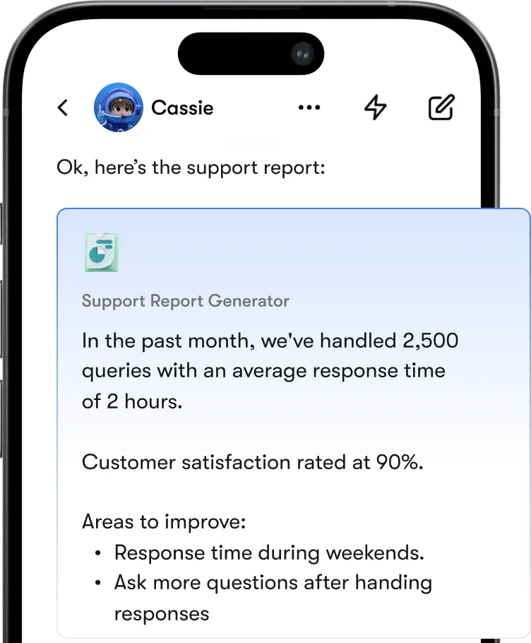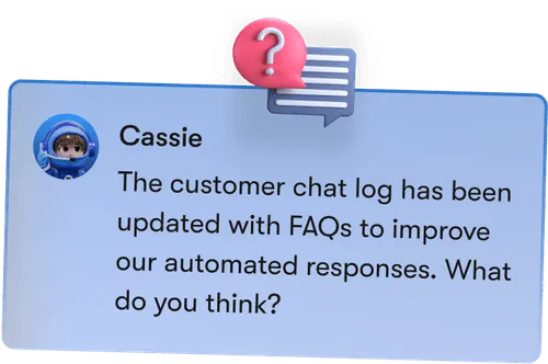 Meet Cassie. The AI-powered customer support specialist who never sleeps. As an example of AI for customer service, Cassie demonstrates how AI-powered customer service and artificial intelligence are transforming support by making it more efficient, personalized, and automated. Trained with insights from thousands of customer interactions to ensure your customers always leave satisfied.
