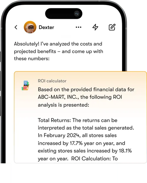 Meet Dexter. Your personal AI data analyst. Dexter leverages advanced analytics to provide precise ROI calculations, sales forecasts, and financial reporting, empowering you to make informed decisions. With advanced AI capabilities, Dexter helps decision makers quickly understand complex data and make smarter business choices.
