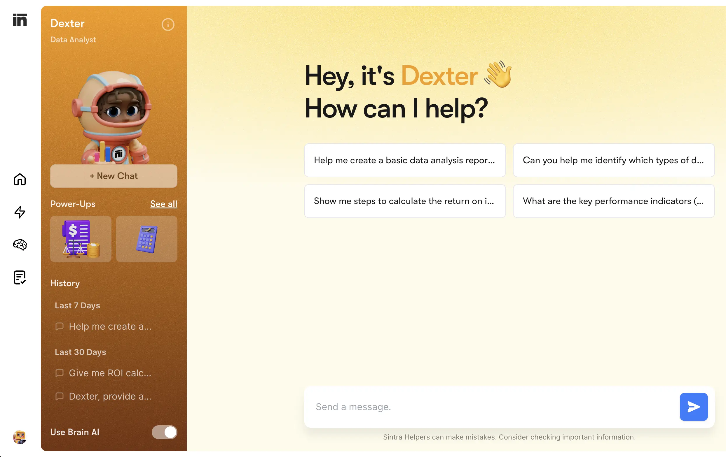 Dexter can automate your work even more with power-ups. Power-ups can enable Sintra helpers to connect to platforms or do more, with less. Power-Ups also enable AI-powered automation to extract insights from your data, helping you identify patterns and trends quickly.