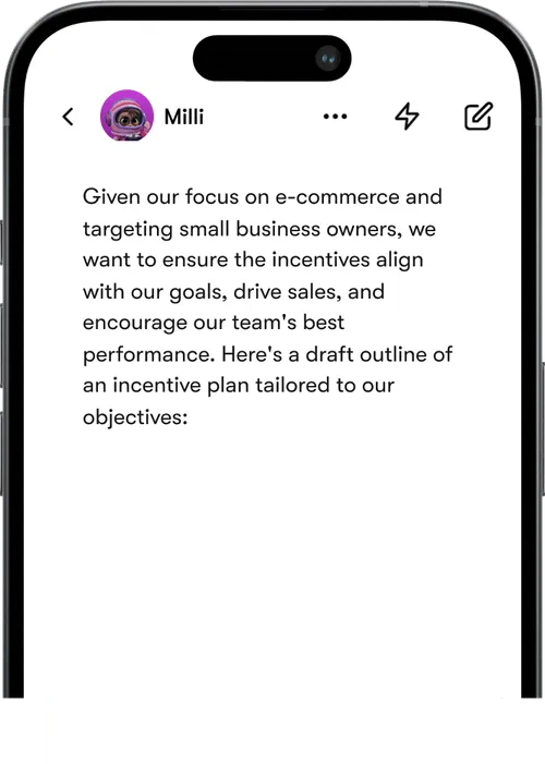 Strategic, charismatic, always closing. Your AI sales manager, Milli.