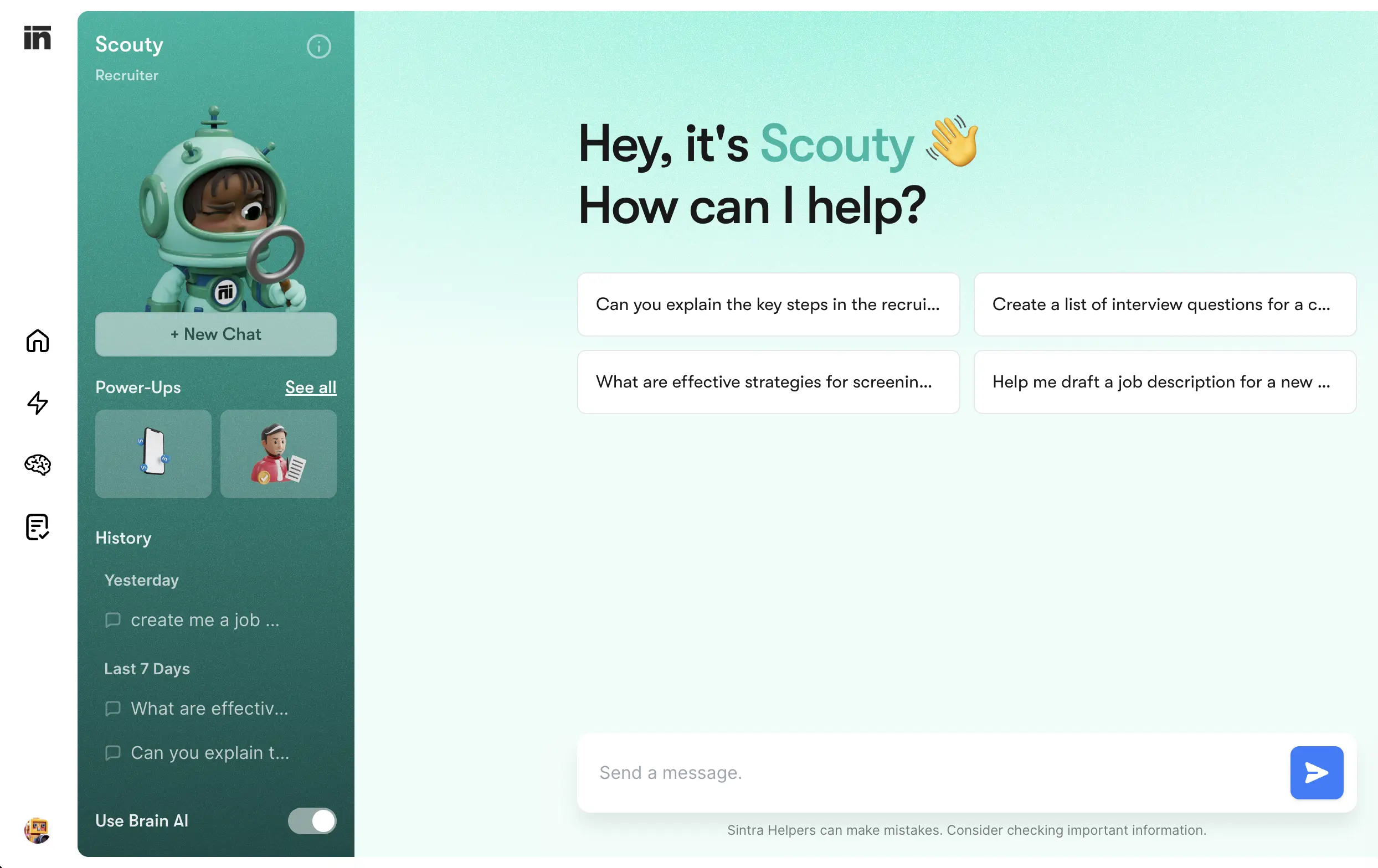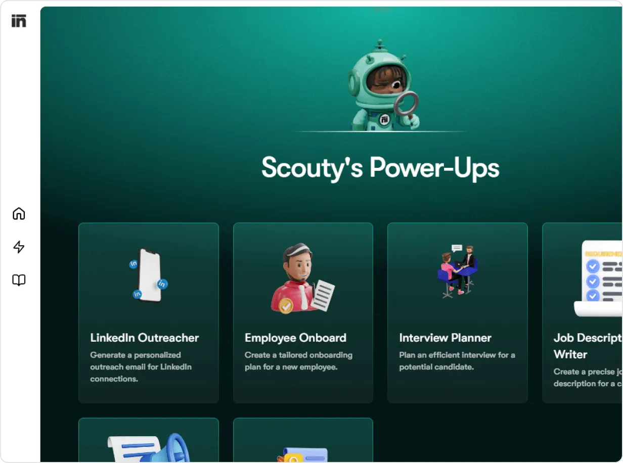 Scouty excels in LinkedIn outreach, screening resumes, crafting job descriptions, and planning interviews. As a forward-looking solution, Scouty is shaping the future of recruitment by leveraging AI to streamline every step.